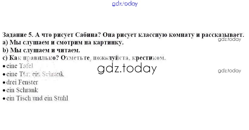 На страницах сайта gdz.today вы найдете учебный и вспомогательный материал, направленный на улучшения знаний школьной программы. ГДЗ - онлайн мир знаний Раздел 1. Что Сабина и Свен особенно любят делать в школе Решение к главе 4. В школе у нас много дел 5 Учебнику по Немецкому языку для 3 класса Бим, Рыжова Просвещение 2014
