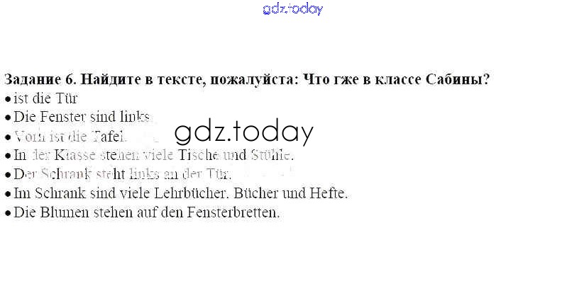 На страницах сайта gdz.today вы найдете учебный и вспомогательный материал, направленный на улучшения знаний школьной программы. ГДЗ - онлайн мир знаний Раздел 1. Что Сабина и Свен особенно любят делать в школе Решение к главе 4. В школе у нас много дел 6 Учебнику по Немецкому языку для 3 класса Бим, Рыжова Просвещение 2014