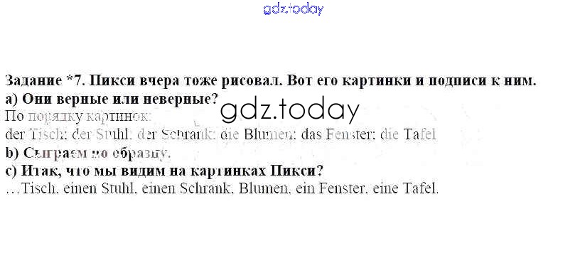 На страницах сайта gdz.today вы найдете учебный и вспомогательный материал, направленный на улучшения знаний школьной программы. ГДЗ - онлайн мир знаний Раздел 2. Наши немецкие друзья вчера много рисовали. Не так ли Решение к главе 4. В школе у нас много дел 7 Учебнику по Немецкому языку для 3 класса Бим, Рыжова Просвещение 2014