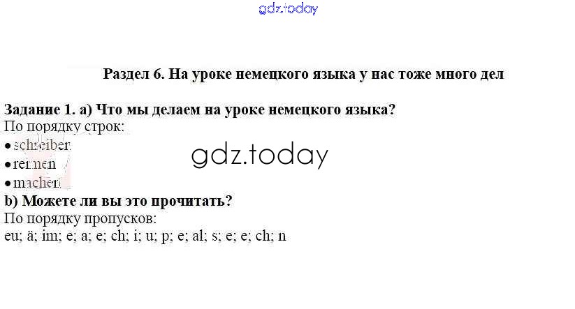 На страницах сайта gdz.today вы найдете учебный и вспомогательный материал, направленный на улучшения знаний школьной программы. ГДЗ - онлайн мир знаний Раздел 6. На уроке немецкого языка у нас тоже много дел Решение к главе 4. В школе у нас много дел 1 Учебнику по Немецкому языку для 3 класса Бим, Рыжова Просвещение 2014