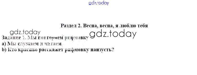 На страницах сайта gdz.today вы найдете учебный и вспомогательный материал, направленный на улучшения знаний школьной программы. ГДЗ - онлайн мир знаний Раздел 2. Весна, весна, я люблю тебя Решение к главе 5. Наступила весна. И с ней замечательные праздника, не так ли 1 Учебнику по Немецкому языку для 3 класса Бим, Рыжова Просвещение 2014