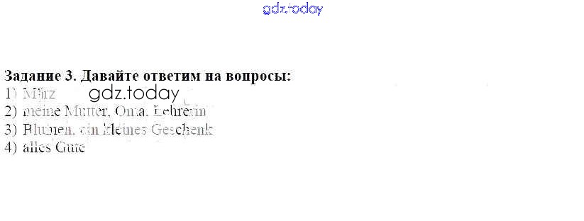 На страницах сайта gdz.today вы найдете учебный и вспомогательный материал, направленный на улучшения знаний школьной программы. ГДЗ - онлайн мир знаний Раздел 3. Мы поздравляем наших мам с Женским днём Решение к главе 5. Наступила весна. И с ней замечательные праздника, не так ли 3 Учебнику по Немецкому языку для 3 класса Бим, Рыжова Просвещение 2014
