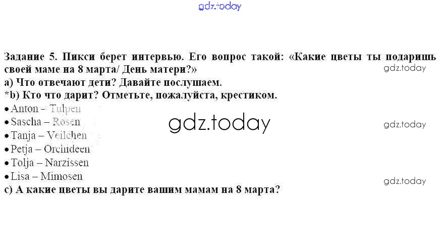 Ответы к Раздел 3. Мы поздравляем наших мам с Женским днём Решение к главе 5. Наступила весна. И с ней замечательные праздника, не так ли 5 Учебнику по Немецкому языку для 3 класса Бим, Рыжова Просвещение 2014