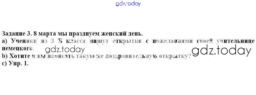 На страницах сайта gdz.today вы найдете учебный и вспомогательный материал, направленный на улучшения знаний школьной программы. ГДЗ - онлайн мир знаний Раздел 4. Кого мы ещё поздравляем с женским днём Решение к главе 5. Наступила весна. И с ней замечательные праздника, не так ли 3 Учебнику по Немецкому языку для 3 класса Бим, Рыжова Просвещение 2014
