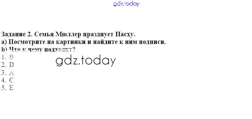 На страницах сайта gdz.today вы найдете учебный и вспомогательный материал, направленный на улучшения знаний школьной программы. ГДЗ - онлайн мир знаний Раздел 5. Семья Мюллер празднует Пасху Решение к главе 5. Наступила весна. И с ней замечательные праздника, не так ли 2 Учебнику по Немецкому языку для 3 класса Бим, Рыжова Просвещение 2014