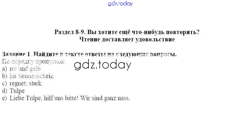 На страницах сайта gdz.today вы найдете учебный и вспомогательный материал, направленный на улучшения знаний школьной программы. ГДЗ - онлайн мир знаний Раздел 8-9. Вы хотите ещё что-нибудь повторить Решение к главе 5. Наступила весна. И с ней замечательные праздника, не так ли 1 Учебнику по Немецкому языку для 3 класса Бим, Рыжова Просвещение 2014