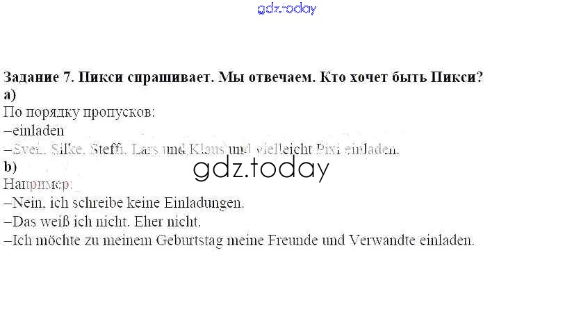 На страницах сайта gdz.today вы найдете учебный и вспомогательный материал, направленный на улучшения знаний школьной программы. ГДЗ - онлайн мир знаний Раздел 1. О чём говорят Сабина и её мама Решение к главе 6. День рождения! Это тоже чудесный день, не так ли 7 Учебнику по Немецкому языку для 3 класса Бим, Рыжова Просвещение 2014