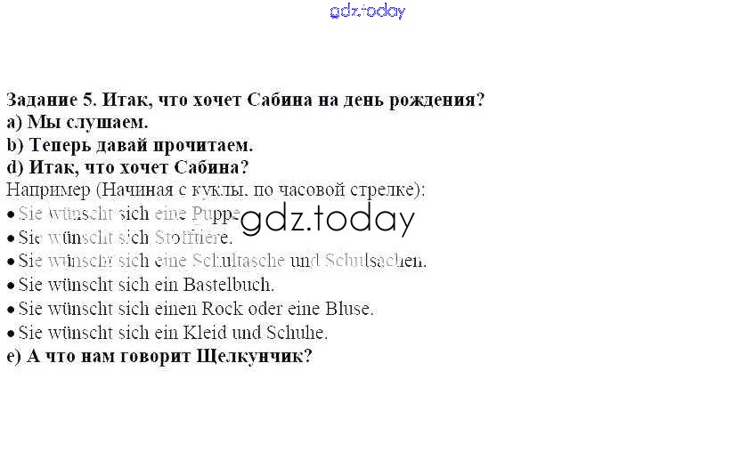 Ответы к Раздел 3. Что хотела бы Сабина на день рождения Решение к главе 6. День рождения! Это тоже чудесный день, не так ли 5 Учебнику по Немецкому языку для 3 класса Бим, Рыжова Просвещение 2014