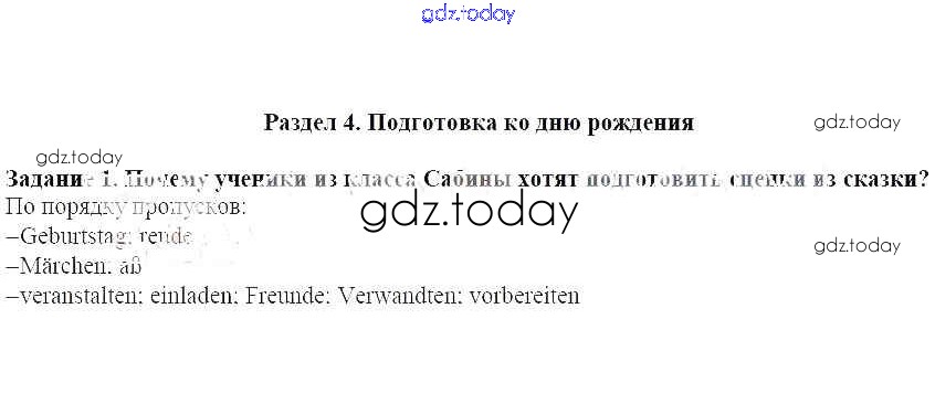 Ответы к Раздел 4. Подготовка ко дню рождения Решение к главе 6. День рождения! Это тоже чудесный день, не так ли 1 Учебнику по Немецкому языку для 3 класса Бим, Рыжова Просвещение 2014