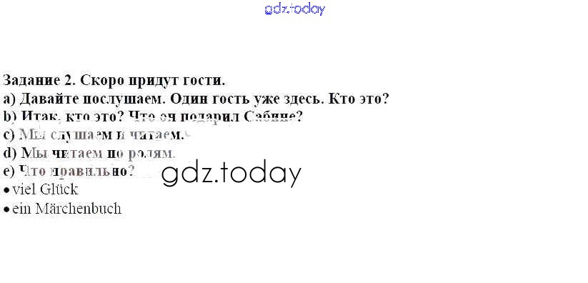 На страницах сайта gdz.today вы найдете учебный и вспомогательный материал, направленный на улучшения знаний школьной программы. ГДЗ - онлайн мир знаний Раздел 6. Сабина празднует день рождения Решение к главе 6. День рождения! Это тоже чудесный день, не так ли 2 Учебнику по Немецкому языку для 3 класса Бим, Рыжова Просвещение 2014