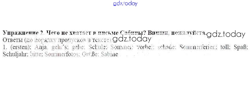 Ответы к Эй, друзья! Мы снова здесь! Здравствуй, 3 (третий) класс! Встреча с друзьями. Маленький курс повторения 2 Рабочей тетради по Немецкому языку для 3 класса Бим, Рыжова Просвещение 2018
