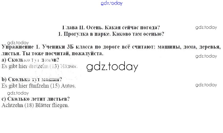 Ответы к Прогулка в парке. Каково там осенью Решение к главе II 1 Рабочей тетради по Немецкому языку для 3 класса Бим, Рыжова Просвещение 2018