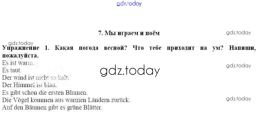 На страницах сайта gdz.today вы найдете учебный и вспомогательный материал, направленный на улучшения знаний школьной программы. ГДЗ - онлайн мир знаний Мы играем и поём Решение к главе V 1 Рабочей тетради по Немецкому языку для 3 класса Бим, Рыжова Просвещение 2018