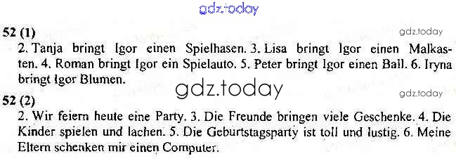 На страницах сайта gdz.today вы найдете учебный и вспомогательный материал, направленный на улучшения знаний школьной программы. ГДЗ - онлайн мир знаний Рішення до Сторінки 52 Рабочей тетради по Немецкому языку для 3 класса Грицюк Пiдручники и посiбники 2014