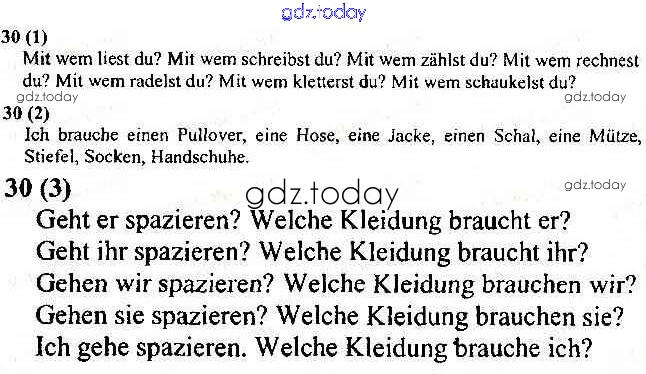На страницах сайта gdz.today вы найдете учебный и вспомогательный материал, направленный на улучшения знаний школьной программы. ГДЗ - онлайн мир знаний Рішення до Сторінки 30 Рабочей тетради по Немецкому языку для 3 класса Мельничук, Паршикова Грамота 2013