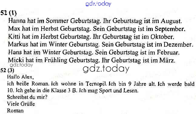 На страницах сайта gdz.today вы найдете учебный и вспомогательный материал, направленный на улучшения знаний школьной программы. ГДЗ - онлайн мир знаний Рішення до Сторінки 52 Рабочей тетради по Немецкому языку для 3 класса Мельничук, Паршикова Грамота 2013