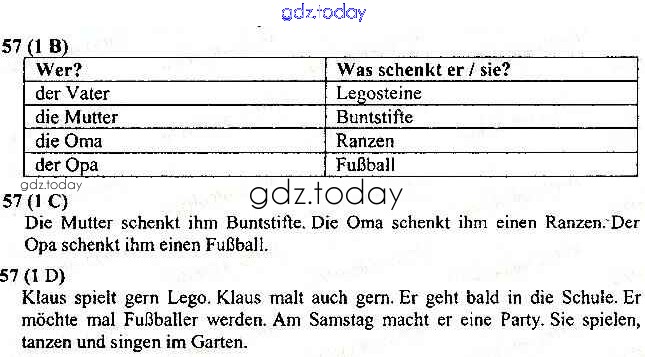 На страницах сайта gdz.today вы найдете учебный и вспомогательный материал, направленный на улучшения знаний школьной программы. ГДЗ - онлайн мир знаний Рішення до Сторінки 57 Рабочей тетради по Немецкому языку для 3 класса Мельничук, Паршикова Грамота 2013