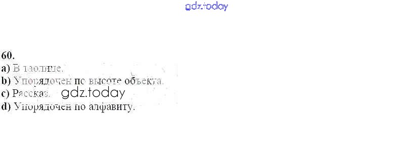 На страницах сайта gdz.today вы найдете учебный и вспомогательный материал, направленный на улучшения знаний школьной программы. ГДЗ - онлайн мир знаний Решение к части 1 60 Учебнику по Информатике для 3 класса Бененсон, Паутова Академкнига Перспективная начальная школа 2017