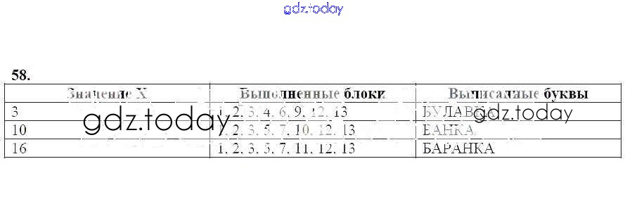 Ответы к Решение к заданиям 58 Тетради для самостоятельной работы по Информатике для 3 класса Бененсон Академкнига Перспективная начальная школа 2018