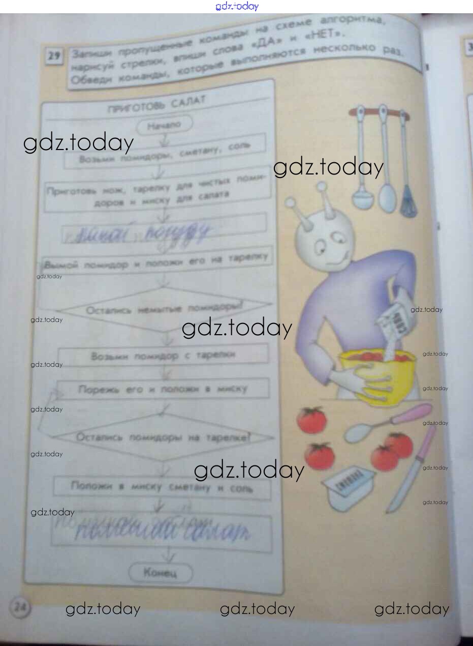 На страницах сайта gdz.today вы найдете учебный и вспомогательный материал, направленный на улучшения знаний школьной программы. ГДЗ - онлайн мир знаний Решение к части 1. Страницы 24 Учебнику по Информатике для 3 класса Горячев, Горина Баласс Школа 2100 2008