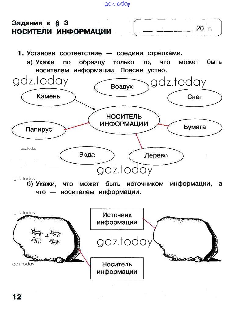 На страницах сайта gdz.today вы найдете учебный и вспомогательный материал, направленный на улучшения знаний школьной программы. ГДЗ - онлайн мир знаний Решение к части 1. Страницы 12 Рабочей тетради по Информатике для 3 класса Матвеева, Челак Бином 2017