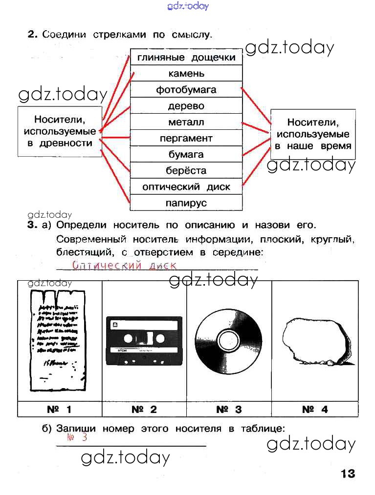 На страницах сайта gdz.today вы найдете учебный и вспомогательный материал, направленный на улучшения знаний школьной программы. ГДЗ - онлайн мир знаний Решение к части 1. Страницы 13 Рабочей тетради по Информатике для 3 класса Матвеева, Челак Бином 2017
