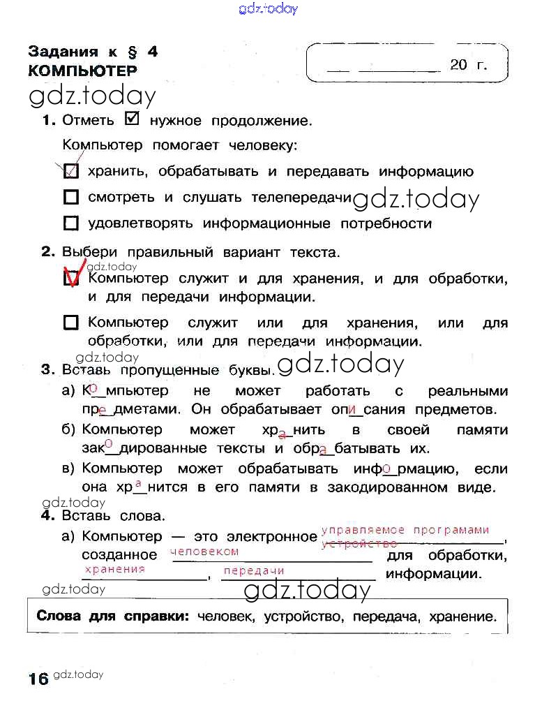На страницах сайта gdz.today вы найдете учебный и вспомогательный материал, направленный на улучшения знаний школьной программы. ГДЗ - онлайн мир знаний Решение к части 1. Страницы 16 Рабочей тетради по Информатике для 3 класса Матвеева, Челак Бином 2017
