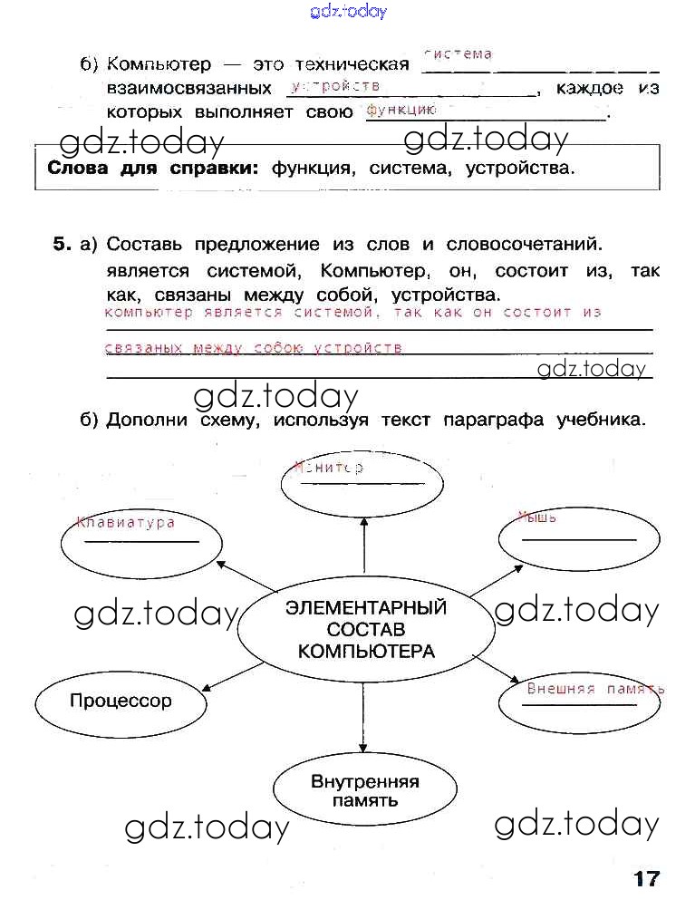 На страницах сайта gdz.today вы найдете учебный и вспомогательный материал, направленный на улучшения знаний школьной программы. ГДЗ - онлайн мир знаний Решение к части 1. Страницы 17 Рабочей тетради по Информатике для 3 класса Матвеева, Челак Бином 2017