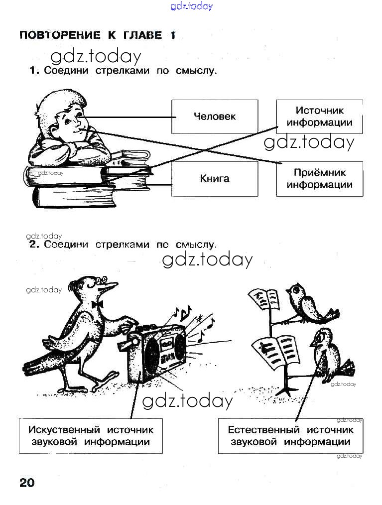 На страницах сайта gdz.today вы найдете учебный и вспомогательный материал, направленный на улучшения знаний школьной программы. ГДЗ - онлайн мир знаний Решение к части 1. Страницы 20 Рабочей тетради по Информатике для 3 класса Матвеева, Челак Бином 2017
