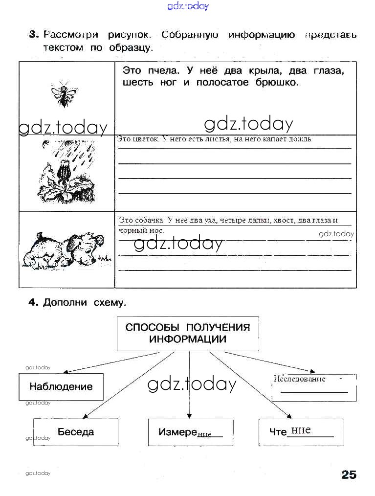 На страницах сайта gdz.today вы найдете учебный и вспомогательный материал, направленный на улучшения знаний школьной программы. ГДЗ - онлайн мир знаний Решение к части 1. Страницы 25 Рабочей тетради по Информатике для 3 класса Матвеева, Челак Бином 2017