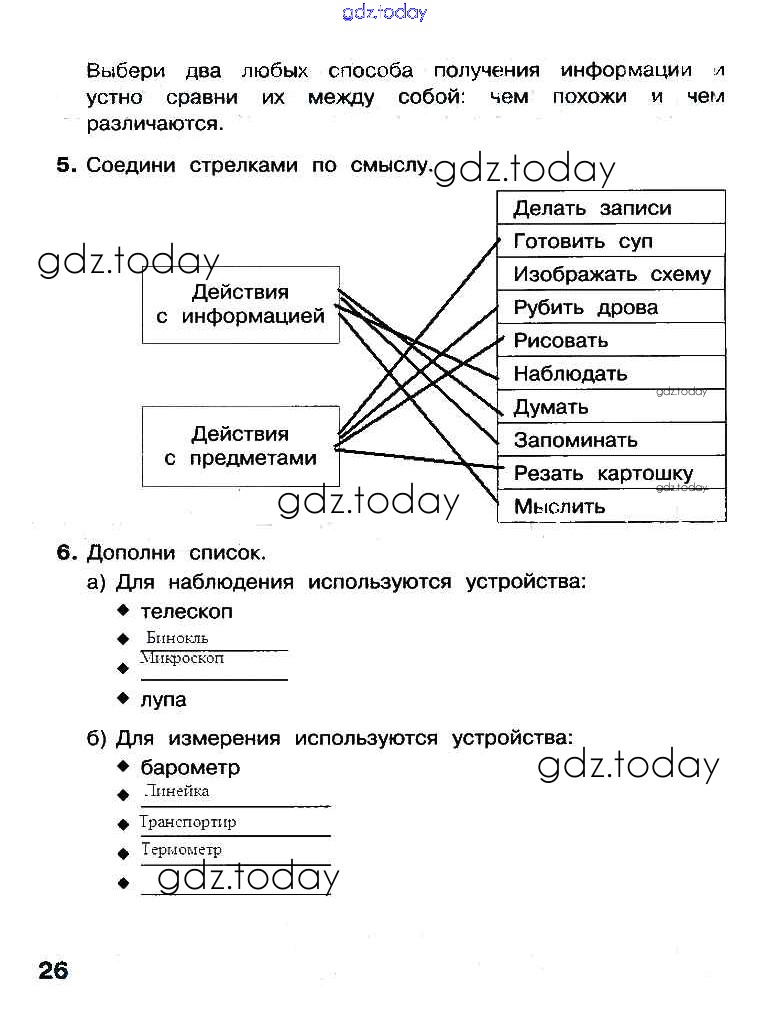 На страницах сайта gdz.today вы найдете учебный и вспомогательный материал, направленный на улучшения знаний школьной программы. ГДЗ - онлайн мир знаний Решение к части 1. Страницы 26 Рабочей тетради по Информатике для 3 класса Матвеева, Челак Бином 2017