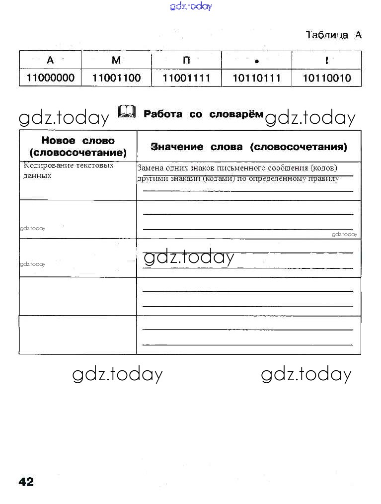 На страницах сайта gdz.today вы найдете учебный и вспомогательный материал, направленный на улучшения знаний школьной программы. ГДЗ - онлайн мир знаний Решение к части 1. Страницы 42 Рабочей тетради по Информатике для 3 класса Матвеева, Челак Бином 2017