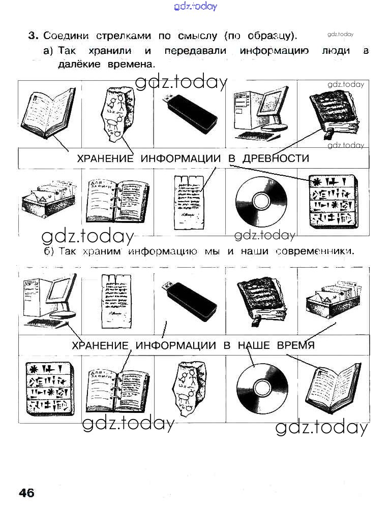 На страницах сайта gdz.today вы найдете учебный и вспомогательный материал, направленный на улучшения знаний школьной программы. ГДЗ - онлайн мир знаний Решение к части 1. Страницы 46 Рабочей тетради по Информатике для 3 класса Матвеева, Челак Бином 2017
