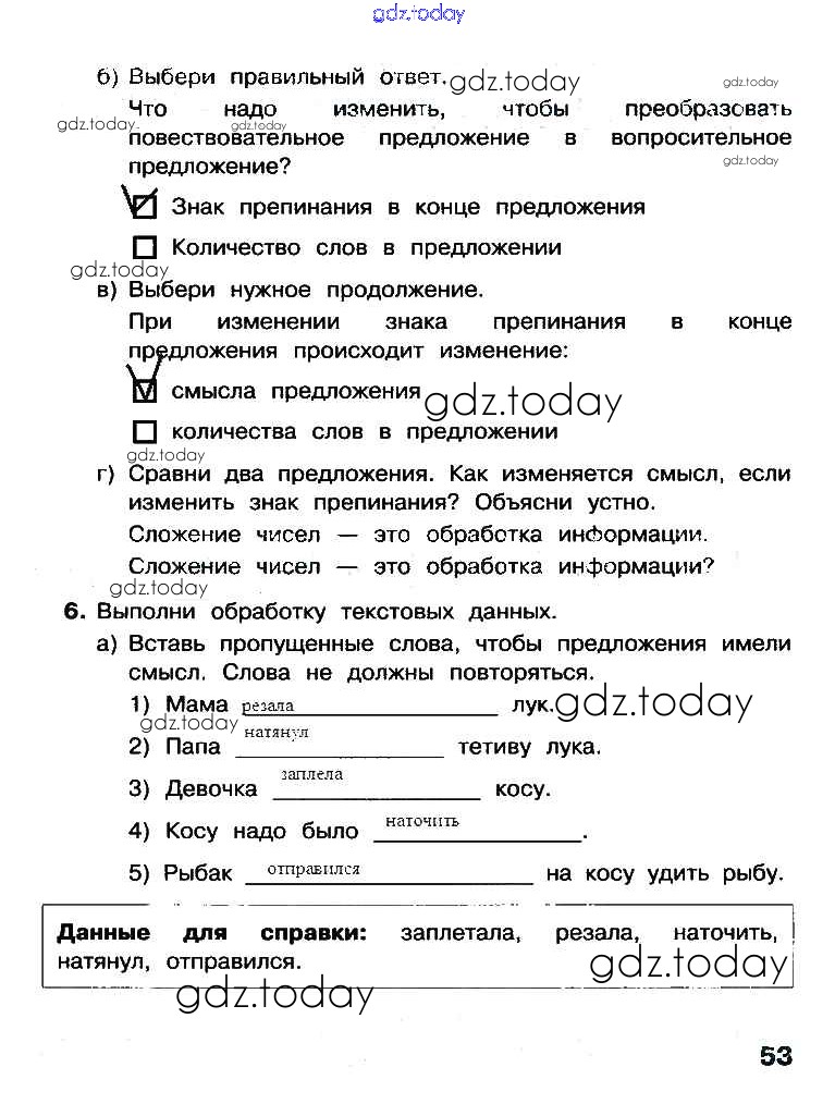 На страницах сайта gdz.today вы найдете учебный и вспомогательный материал, направленный на улучшения знаний школьной программы. ГДЗ - онлайн мир знаний Решение к части 1. Страницы 53 Рабочей тетради по Информатике для 3 класса Матвеева, Челак Бином 2017