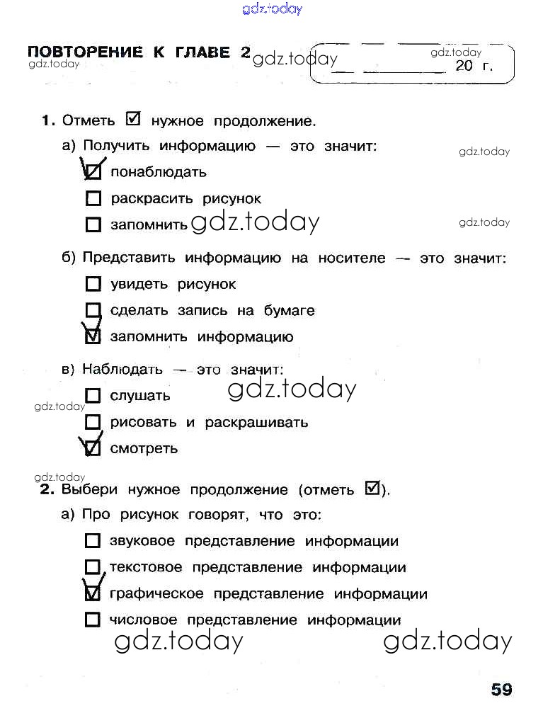 На страницах сайта gdz.today вы найдете учебный и вспомогательный материал, направленный на улучшения знаний школьной программы. ГДЗ - онлайн мир знаний Решение к части 1. Страницы 59 Рабочей тетради по Информатике для 3 класса Матвеева, Челак Бином 2017