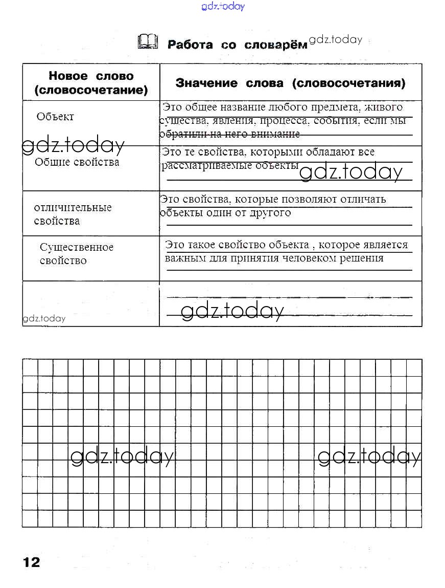 На страницах сайта gdz.today вы найдете учебный и вспомогательный материал, направленный на улучшения знаний школьной программы. ГДЗ - онлайн мир знаний Решение к части 2. Страницы 12 Рабочей тетради по Информатике для 3 класса Матвеева, Челак Бином 2017