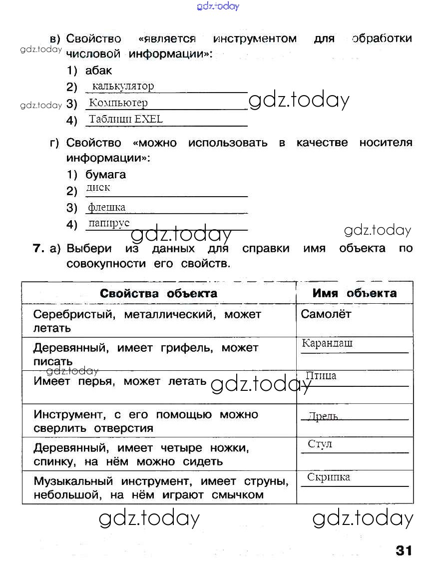 На страницах сайта gdz.today вы найдете учебный и вспомогательный материал, направленный на улучшения знаний школьной программы. ГДЗ - онлайн мир знаний Решение к части 2. Страницы 31 Рабочей тетради по Информатике для 3 класса Матвеева, Челак Бином 2017