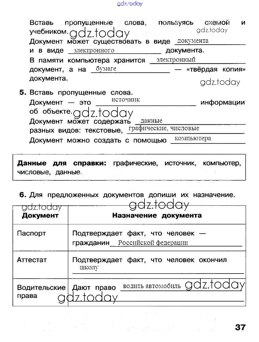 На страницах сайта gdz.today вы найдете учебный и вспомогательный материал, направленный на улучшения знаний школьной программы. ГДЗ - онлайн мир знаний Решение к части 2. Страницы 37 Рабочей тетради по Информатике для 3 класса Матвеева, Челак Бином 2017