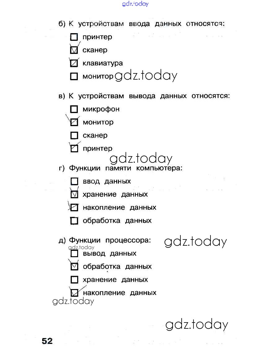 На страницах сайта gdz.today вы найдете учебный и вспомогательный материал, направленный на улучшения знаний школьной программы. ГДЗ - онлайн мир знаний Решение к части 2. Страницы 52 Рабочей тетради по Информатике для 3 класса Матвеева, Челак Бином 2017