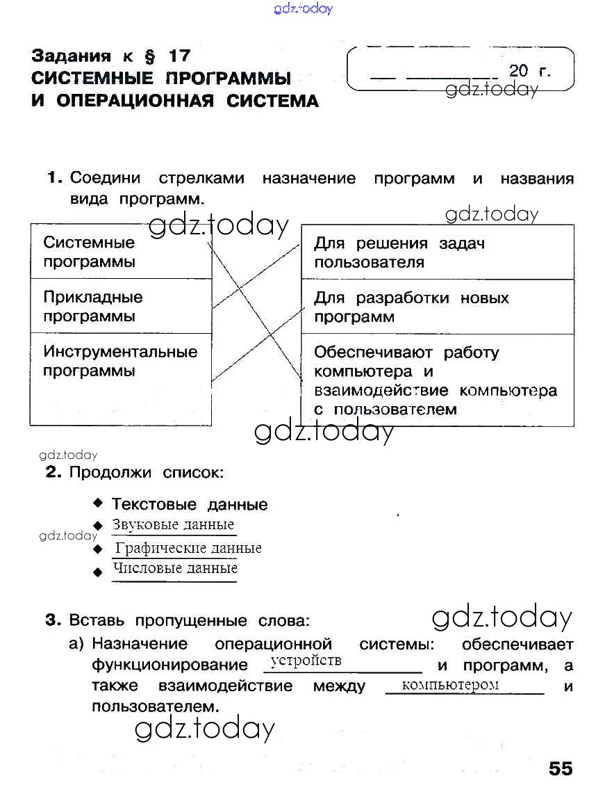 На страницах сайта gdz.today вы найдете учебный и вспомогательный материал, направленный на улучшения знаний школьной программы. ГДЗ - онлайн мир знаний Решение к части 2. Страницы 55 Рабочей тетради по Информатике для 3 класса Матвеева, Челак Бином 2017