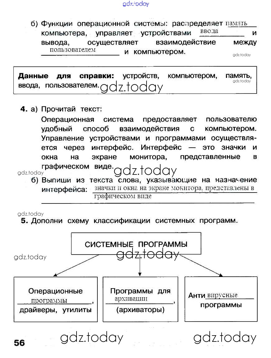 На страницах сайта gdz.today вы найдете учебный и вспомогательный материал, направленный на улучшения знаний школьной программы. ГДЗ - онлайн мир знаний Решение к части 2. Страницы 56 Рабочей тетради по Информатике для 3 класса Матвеева, Челак Бином 2017