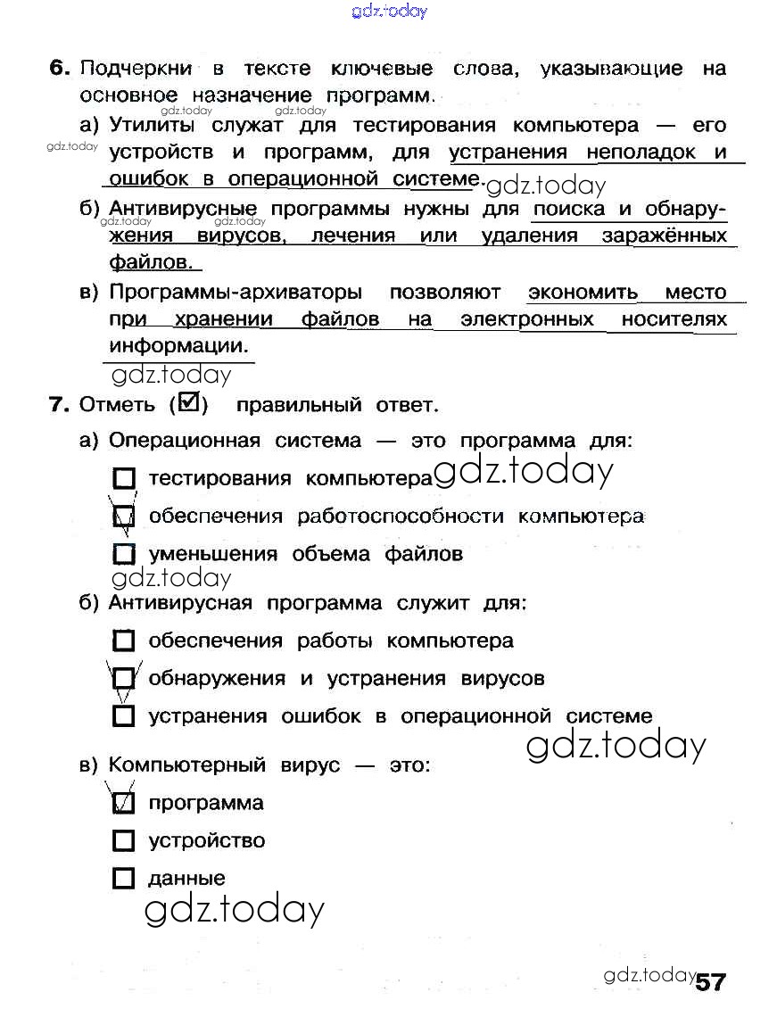 На страницах сайта gdz.today вы найдете учебный и вспомогательный материал, направленный на улучшения знаний школьной программы. ГДЗ - онлайн мир знаний Решение к части 2. Страницы 57 Рабочей тетради по Информатике для 3 класса Матвеева, Челак Бином 2017