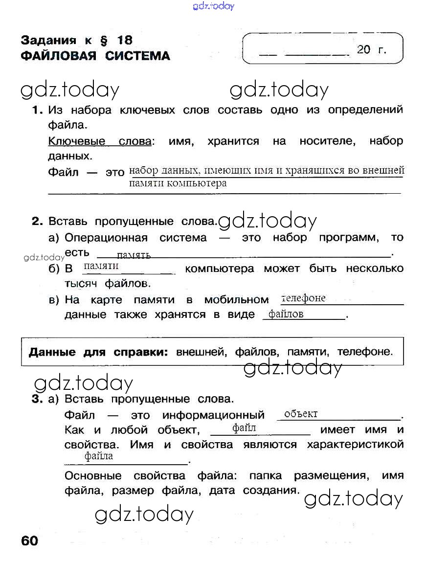 На страницах сайта gdz.today вы найдете учебный и вспомогательный материал, направленный на улучшения знаний школьной программы. ГДЗ - онлайн мир знаний Решение к части 2. Страницы 60 Рабочей тетради по Информатике для 3 класса Матвеева, Челак Бином 2017