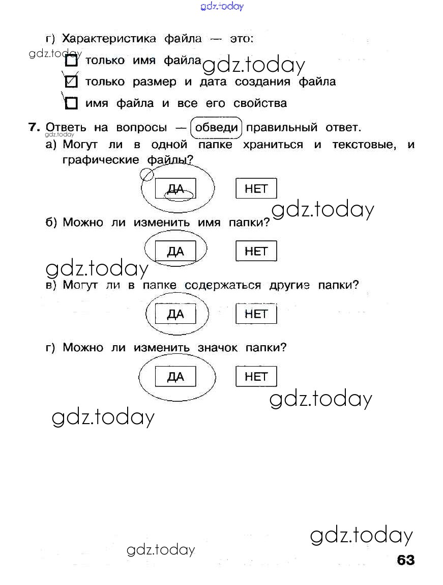 На страницах сайта gdz.today вы найдете учебный и вспомогательный материал, направленный на улучшения знаний школьной программы. ГДЗ - онлайн мир знаний Решение к части 2. Страницы 63 Рабочей тетради по Информатике для 3 класса Матвеева, Челак Бином 2017