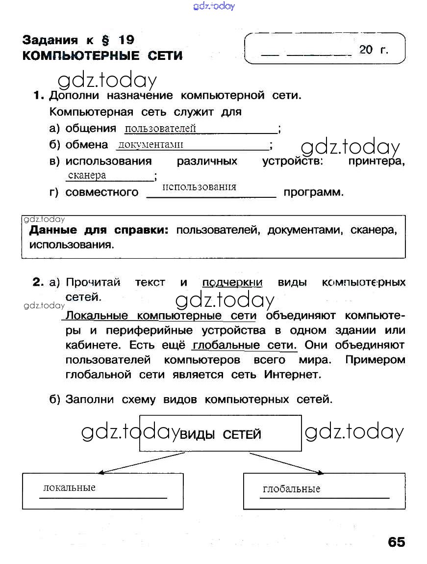 На страницах сайта gdz.today вы найдете учебный и вспомогательный материал, направленный на улучшения знаний школьной программы. ГДЗ - онлайн мир знаний Решение к части 2. Страницы 65 Рабочей тетради по Информатике для 3 класса Матвеева, Челак Бином 2017
