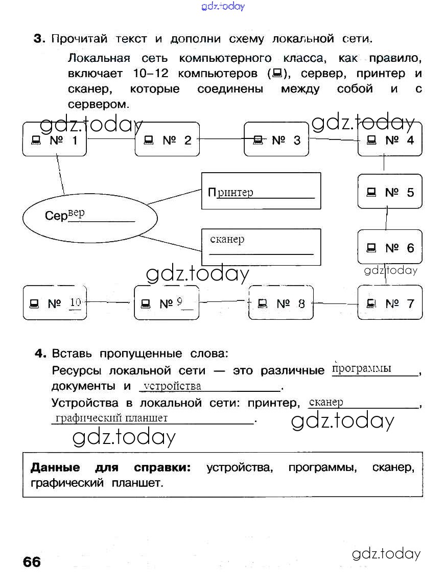 На страницах сайта gdz.today вы найдете учебный и вспомогательный материал, направленный на улучшения знаний школьной программы. ГДЗ - онлайн мир знаний Решение к части 2. Страницы 66 Рабочей тетради по Информатике для 3 класса Матвеева, Челак Бином 2017