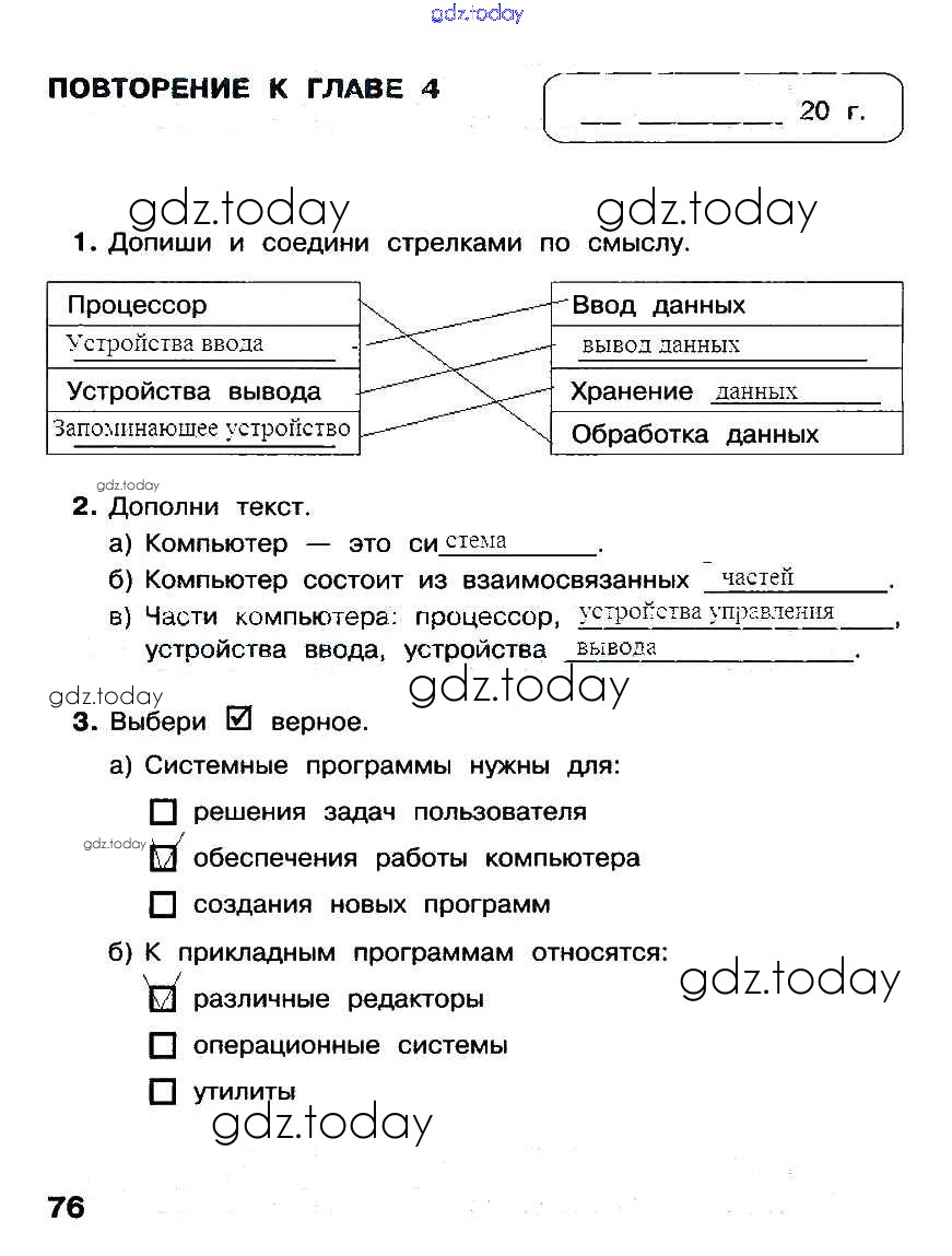 На страницах сайта gdz.today вы найдете учебный и вспомогательный материал, направленный на улучшения знаний школьной программы. ГДЗ - онлайн мир знаний Решение к части 2. Страницы 76 Рабочей тетради по Информатике для 3 класса Матвеева, Челак Бином 2017