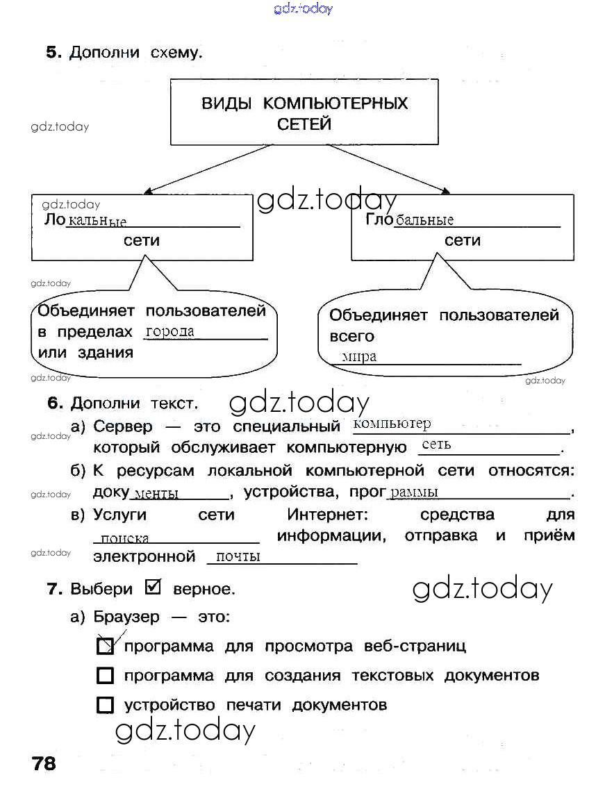 На страницах сайта gdz.today вы найдете учебный и вспомогательный материал, направленный на улучшения знаний школьной программы. ГДЗ - онлайн мир знаний Решение к части 2. Страницы 78 Рабочей тетради по Информатике для 3 класса Матвеева, Челак Бином 2017