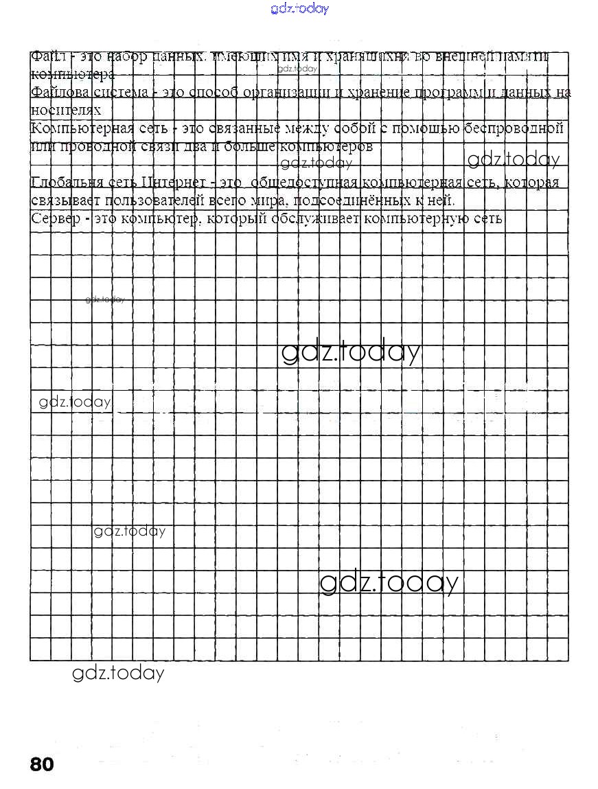 На страницах сайта gdz.today вы найдете учебный и вспомогательный материал, направленный на улучшения знаний школьной программы. ГДЗ - онлайн мир знаний Решение к части 2. Страницы 80 Рабочей тетради по Информатике для 3 класса Матвеева, Челак Бином 2017