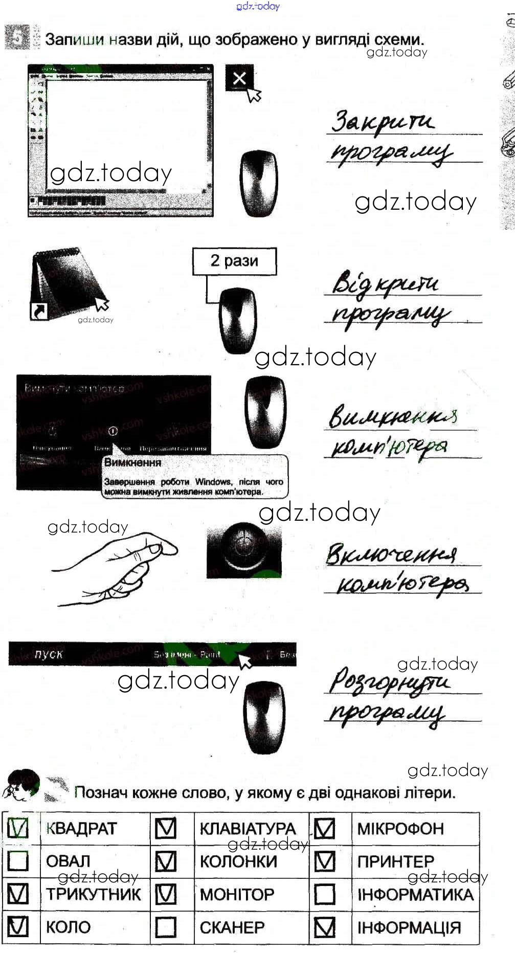 Ответы к Рішення до Повторюємо основні правила роботи за комп’ютером 5 Рабочей тетради по Информатике для 3 класса Коршунова Генеза 2014